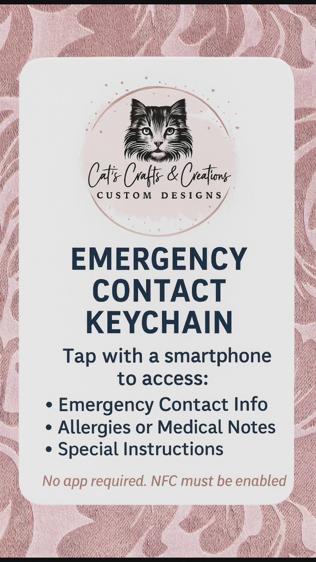 NFC Emergency Contact Keychain for Kids – Custom Name & Medical Info